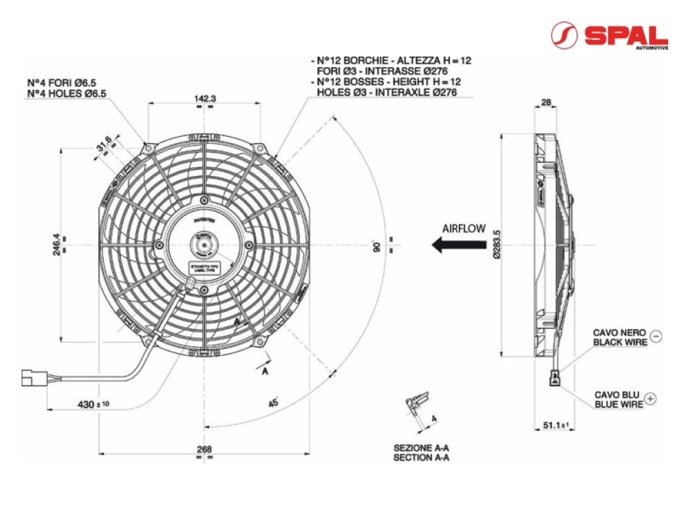 Eletroventilador Spal VA11-AP7/C-57S 12V 10 POLEGADA SOPRANTE PERFIL BAIXO